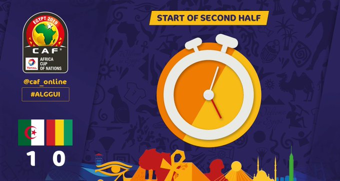 - الدقيقة 57 جوووووووول الهدف الثاني لمنتخب الجزائر عن طريق رياض محرز بعد أن سدد الكرة على الجانب الأيمن لمرمى غينيا بعد أن استلم عرضية من زميله بن ناصر
