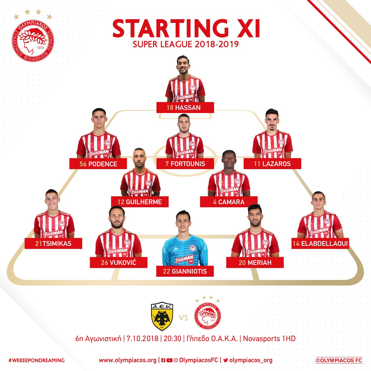 وضم تشكيل أولمبياكوس كلًا من: