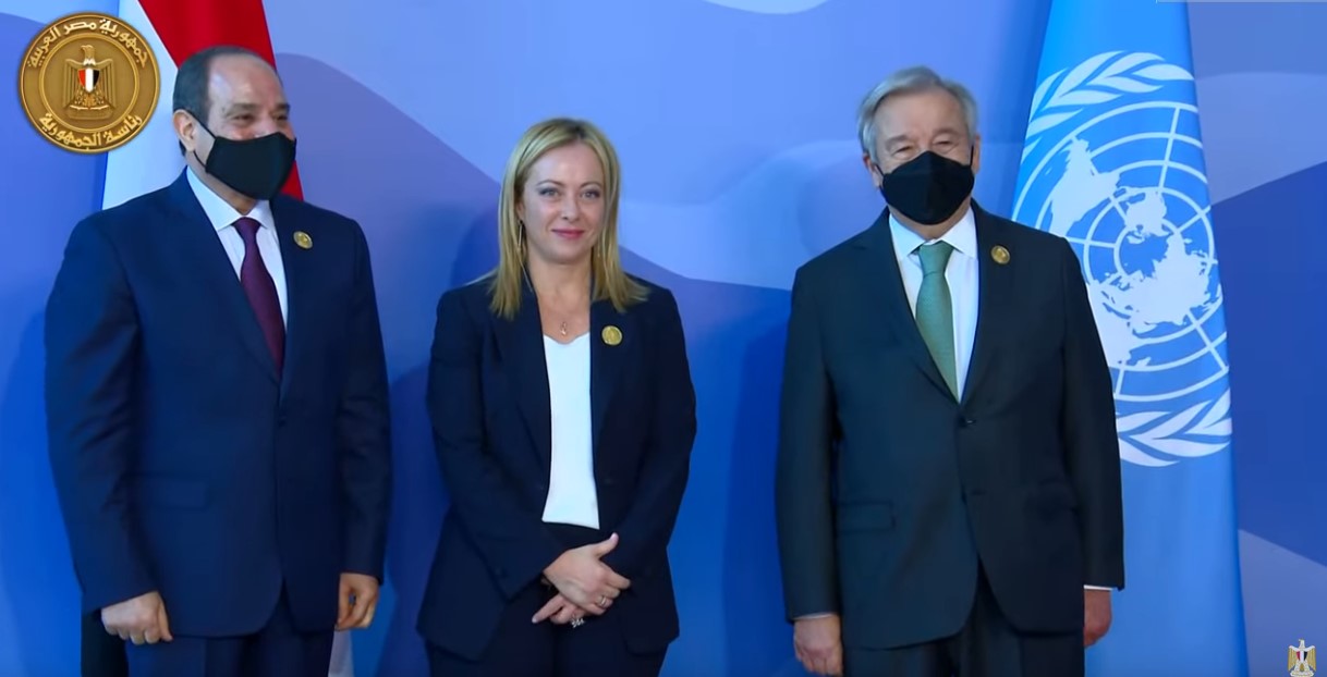 واستقبل الرئيس السيسي وجوتيريش، جورجيا ميلوني رئيسة وزراء إيطاليا.