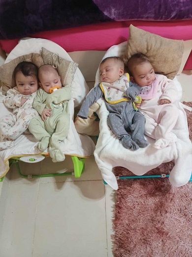 وتتابع نرمين، التي يعمل زوجها فني تبريد وتكييف: "في البداية ظنت الطبيبة أن هناك ورمًا أو كتلة غير واضحة، ثم تبيّن في مستشفى المطرية أنني أحمل أربعة أجنة. لم يصدق الطبيب وكان يضحك بدهشة، وأنا لا أستوعب ما أراه على الشاشة".