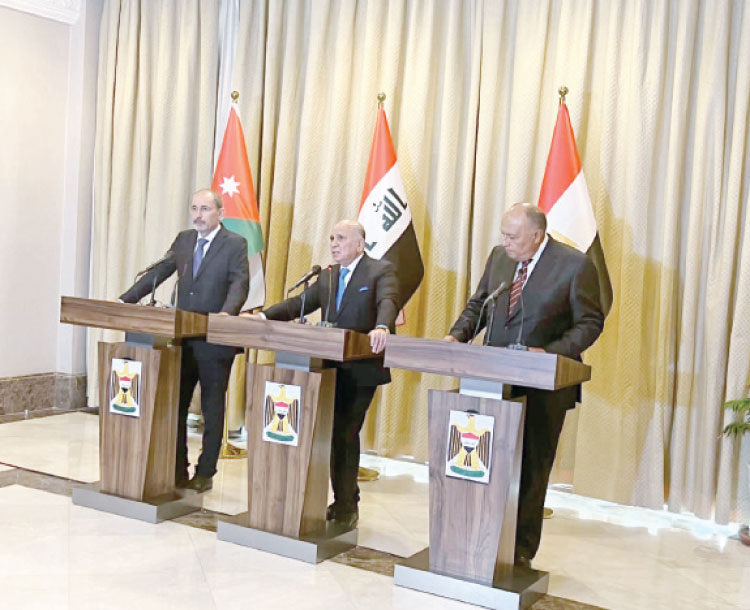 وأضاف خلال مؤتمر صحفي مشترك مع نظيريه المصري والأردني، صباح الأربعاء، أن تركيا وإيران متوقع مشاركتهما في النسخة الثانية من المؤتمر، منوهًا إلى أن التدخلات الخارجية في العراق عديدة.