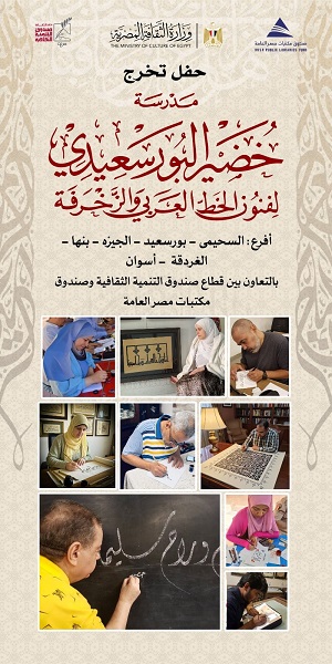 يحتفل قطاع صندوق التنمية الثقافية، برئاسة المعماري حمدي السطوحي، تخرّج الدفعة الثالثة من مدرسة خضير البورسعيدي للخط العربي، وذلك من خلال احتفالية خاصة تقام في السادسة مساء اليوم الأحد بمركز الهناجر ومركز الإبداع الفني بساحة دار أوبرا القاهرة.