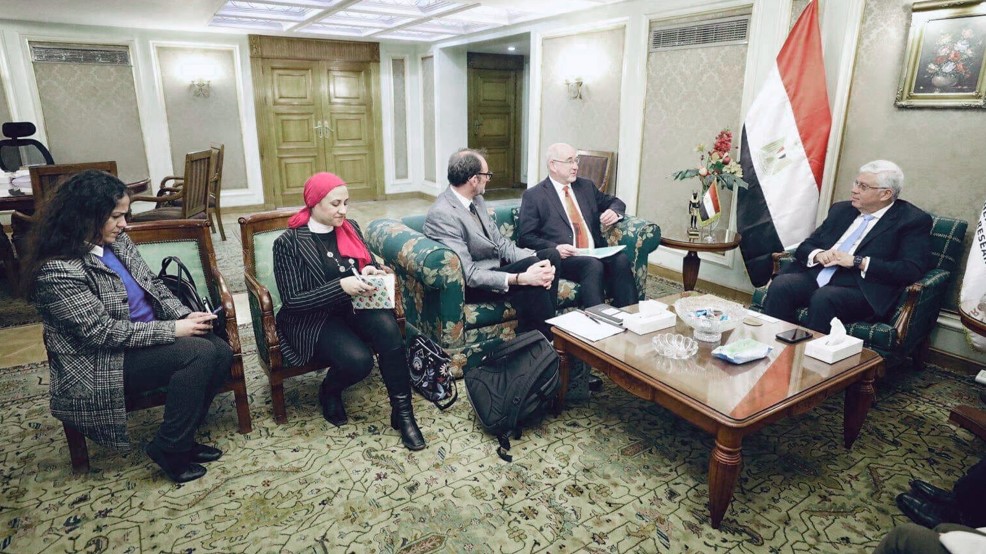 ناقش الدكتور أيمن عاشور وزير التعليم العالي، والدكتور فيليب جيلمارتين نائب رئيس جامعة هال البريطانية، وروبرت سكيلتون كلارك مسئول التعاون الدولي بالجامعة، تعزيز أوجه التعاون العلمي والثقافي، وتبادل الخبرات بين الجامعات المصرية وجامعة هال البريطانية، وإجراء الأبحاث العلمية فى المجالات ذات الأولوية والاهتمام المشترك، فضلاً عن التعاون فى مجال الأنظمة التعليمية، واللوائح الدراسية، بحضور محمد سمير حمزة القائم بعمل رئيس قطاع الشئون الثقافية والبعثات، وسلمى يسري مستشار الوزير للتعاون الدولي.