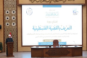 يأتي ذلك خلال افتتاحه دورة التعريف بالقضية الفلسطينية بمقر دار الإفتاء المصرية، بحضور الدكتور محمد مهنا أستاذ القانون الدولي بكلية الشريعة والقانون بجامعة الأزهر الشريف، وعدد من أئمة وزارة الأوقاف ووعاظ الأزهر الشريف وأمناء الفتوى بدار الإفتاء المصرية.