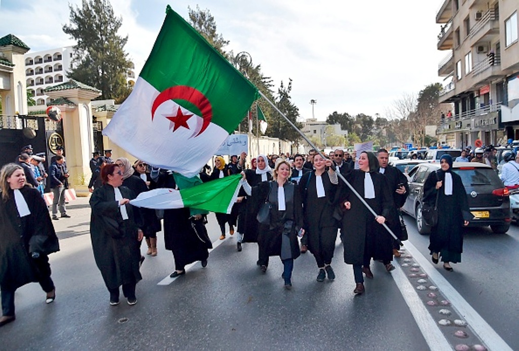 من جانبهم،نظم عشرات المحامين الجزائريين وقفة احتجاجية سلمية بالقرب من مقر المجلس الدستوري بالعاصمة الجزائرية.