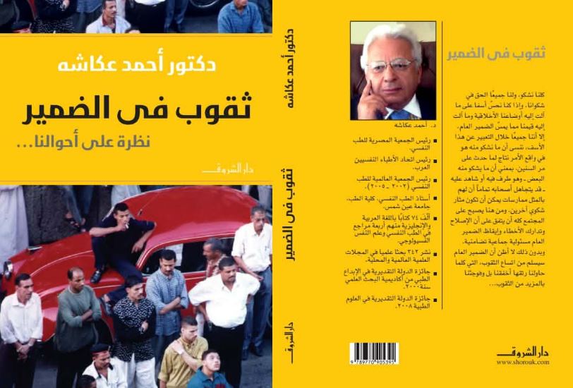 قراءة نفسية اجتماعية جريئة لأمراض المجتمع المصري والعربي، يقدمها الدكتور أحمد عكاشة، أحد أعلام الطب النفسي، ورئيس الجمعية المصرية للطب النفسي في كتابه «ثقوب في الضمير.. نظرة على أحوالنا» الصادر عن دار الشروق، واضعًا مفهوم «الضمير العام» في قلب تحليله، باعتباره الحارس الأخلاقي للسلوك الجمعي، والدرع الذي يحمي المجتمعات من الانزلاق إلى الفساد والانحلال والتفكك.