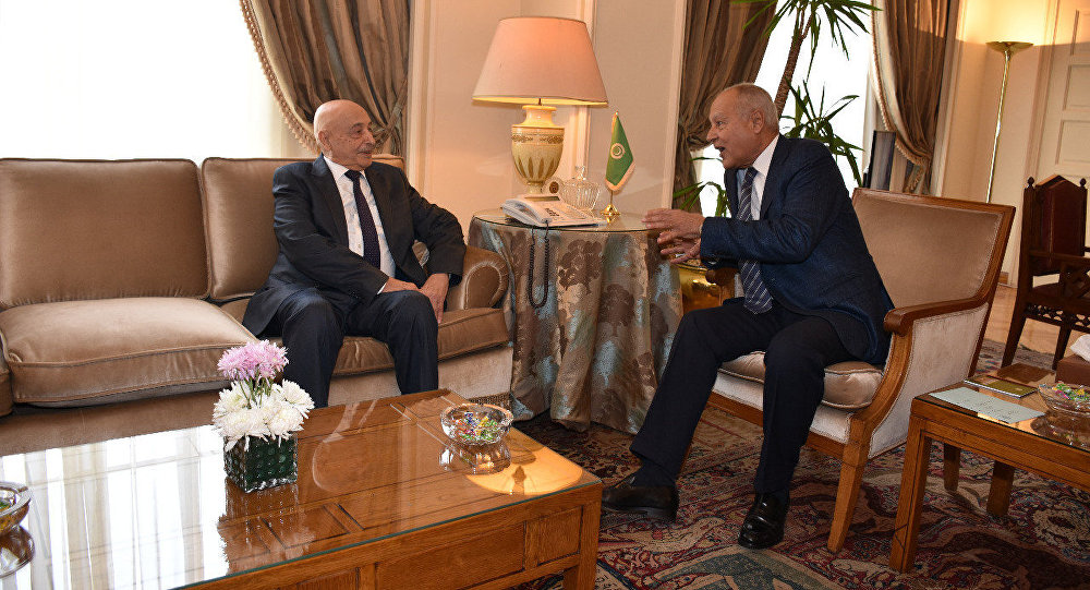 وصرح السفير محمود عفيفى، المتحدث الرسمى باسم الأمين العام، بأن أبوالغيط جدد خلال المقابلة التزام الجامعة العربية الكامل بمرافقة الأشقاء الليبيين فى كل ما من شأنه أن يفضى إلى تسوية متكاملة للأزمة الليبية ويفتح المجال أمام توحيد مؤسسات الدولة واتمام الاستحقاقات الدستورية والانتخابية التى يتطلع إليها الشعب الليبى؛ كما دعا أبوالغيط إلى تشجيع جميع الأطراف الليبية على ضبط النفس فى هذه المرحلة الدقيقة التى تمر بها البلاد وتجنب أى تصعيد للموقف فى الميدان بما يكفل العودة إلى الحوار للتوصل إلى حل سياسى سلمى لاستكمال المرحلة الانتقالية.