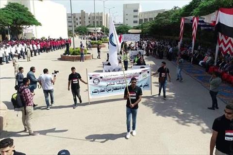 وبدأ الحفل بطابور عرض لكليات الجامعة ومستشفياتها ومراكزها الطبية، حيث عبرت كل منها عن هويتها مع مشاركة مميزة لفريق طلاب من أجل مصر الذى حمل لافتات تثمن نصر أكتوبر المجيد.