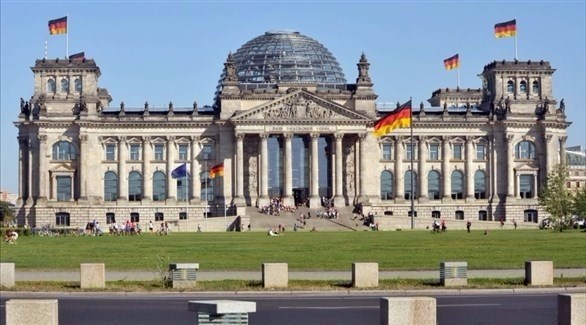 تجمع عشرات المحتجين على سياسة الحكومة الألمانية الخاصة بالطاقة قبالة مبنى البرلمان في العاصمة برلين، اليوم السبت.