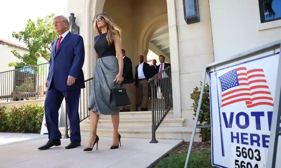 أدلي الرئيس الأمريكي السابق دونالد ترامب وزوجته ميلانيا بصوتيهما في انتخابات منتصف الولاية الحاسمة، في بالم بيتش بولاية فلوريدا الأمريكية.