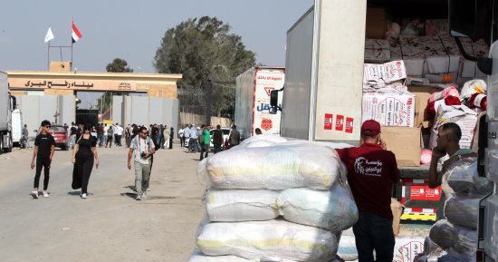 وفي سياق موازي استقبل مطار العريش الدولي بشمال سيناء خلال الساعات الأخيرة، عدة طائرات مساعدات وقال الدكتور خالد زايد، رئيس فرع الهلال الأحمر المصري في شمال سيناء، إن طائرتين وصلتا إلى المطار من دولة الأردن تحملان 23 طنًا من الادوية والمستلزمات الطبية مقدمة من منظمة الأونروا، وطائرة من دولة قطر محملة ب24 طنًا من مستلزمات العناية بالأطفال، و6 سيارات إسعاف مجهزة، وطائرة من بلجيكا محملة ب40 طنا من الأدوية والمستلزمات الطبية والإغاثية، مقدمة من الاتحاد الأوروبي، وطائرة من الكويت محملة ب31 طنًا من المواد الطبية والإغاثية و4 سيارات إسعاف مجهزة.
