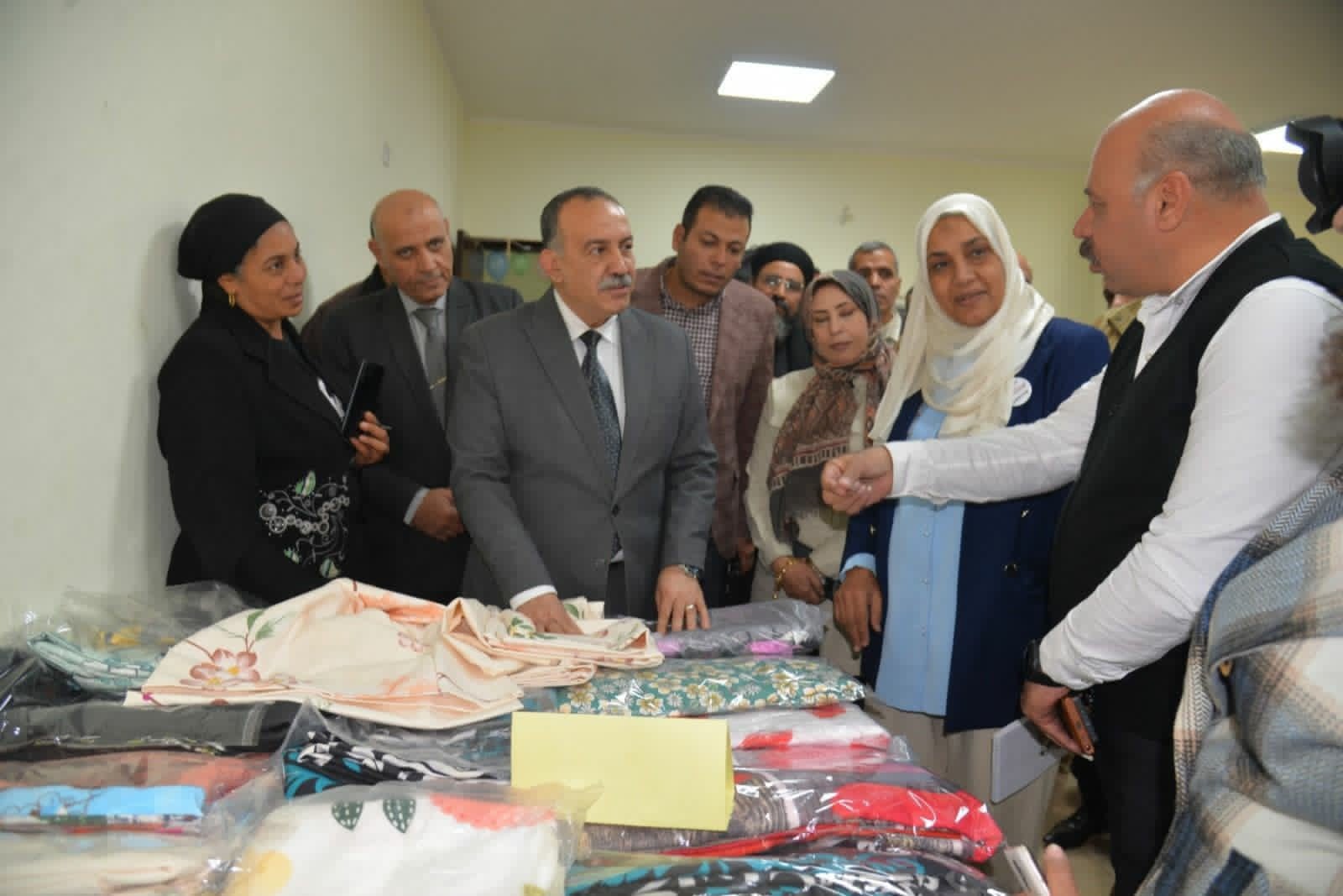 وتفقد المحافظ أقسام المعرض الملحق بالمشغل، والذي ضم مجموعة من المنتجات المحلية، شملت المشغولات اليدوية وملابس الأطفال والسيدات والمفروشات والستائر، إضافة إلى ركن لإعادة تدوير الأقمشة ومنتجات التطريز والتريكو والكروشيه وسعف النخيل، حيث استمع إلى شرح من القائمين على العمل حول مراحل التصنيع وجودة المنتجات.