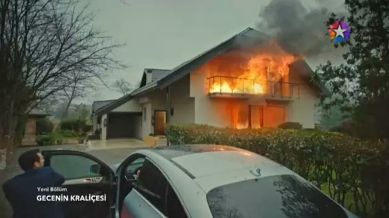 مريم أوزرلي طمأنت جمهورها أن الصور من مسلسلها الجديد بعنوان "ملكة الليل" والذي يبث على القنوات التركية بحيث يتعرض منزلها لحريق ضخم يعرضها للإيذاء ويدخلها في حالة صحية حرجة.