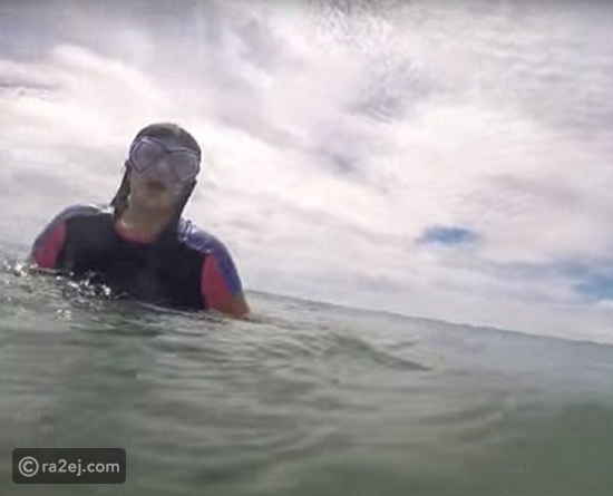 ويُظهر الفيديو كيف كانت الفتاة تلوح لوالدها من تحت الماء، ثم فجأة يظهر الوحش!