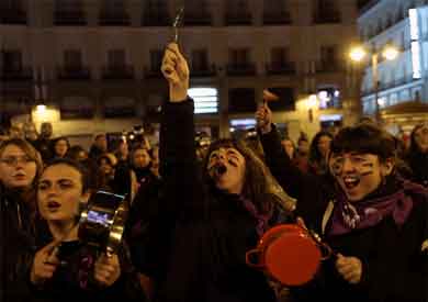 وكما حدث العام الماضي دخلت شخصيات سياسية في إضراب أيضا الجمعة بينها رئيسة بلدية مدريد مانويلا كارمينا (يسار) والصحافية في اذاعة كادينا بيبا بيونو وأيضا العاملات في هيئة تحرير صحيفة البايس.