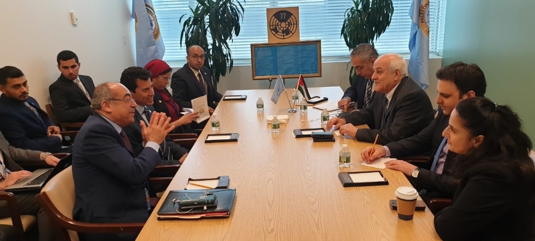 وفي نفس السياق، التقى أشرف صبحي، بالسفير الدكتور رياض منصور رئيس مجموعة ال٧٧ والمندوب الدائم لفلسطين، لاستعراض التجارب والمبادرات الشبابية المصرية الناجحة منها تجربة الشباب يدير الشباب وتأهيل النشء والشباب لسوق العمل ونشر ثقافة ريادة الأعمال.