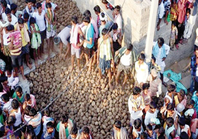 جدير بالذكر أن الرشق بروث البقر هي عادة هندية قديمة، حيث يعتقد السكان هناك بأن مثل هذا التقليد سيجعلهم يعيشون حياة أسعد، وسيقوي مناعتهم ضد الأمراض.
