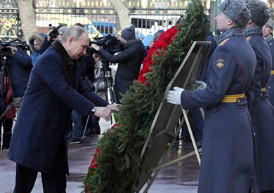 ووضع «بوتين»، إكليلًا من الزهور على ضريح الجندي المجهول، في العاصمة موسكو، ضمن فعاليات الاحتفال بعيد النصر.