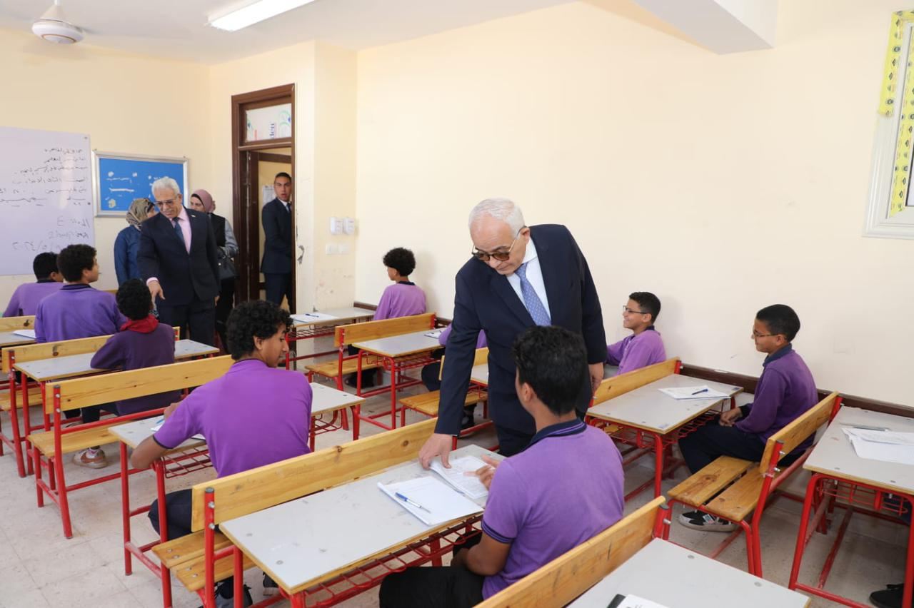 وتفقد الوزير لجان امتحانات الصف الأول الإعدادى أثناء تأدية الطلاب مادة الدراسات الاجتماعية، ولجان الصف الثانى الإعدادى، حيث يؤدى الطلاب امتحان مادة اللغة الإنجليزية.