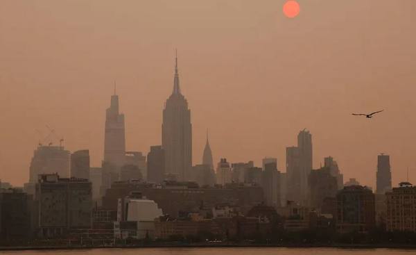 وتحركت المئات من ألسنة اللهب وأعمدة الدخان في شرق كندا جنوبا، مما تسبب في ضباب كثيف وظهور لون برتقالي خفيف، في السماء في نيويورك وأماكن أخرى.