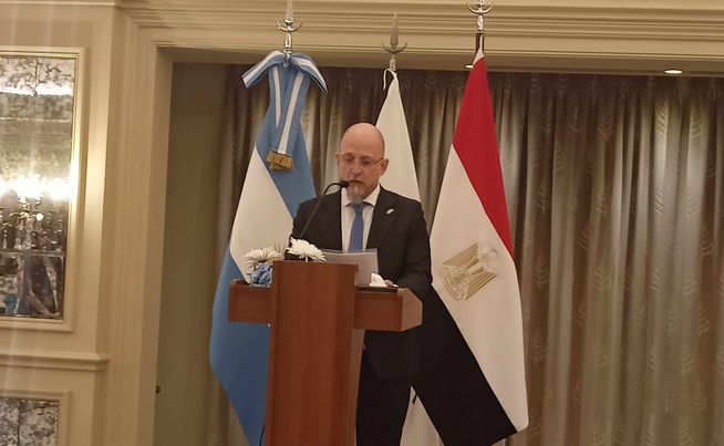 وأشار إلى أنه "على مر السنين، استمرت تقوية العلاقات بين الأرجنتين ومصر بناءً على القيم والمثل المشتركة، كما وقف كل من بلدينا جنبًا إلى جنب لتعزيز سبل السلام والاستقرار والديمقراطية والتجارة ونقل التكنولوجيا وتبادل الثقافات. هذه الصداقة الدائمة، المليئة بالتوافقات السياسية، ثبتت أهميتها، خاصة في الظروف السياسية المتغيرة باستمرار التي نعيشها اليوم".