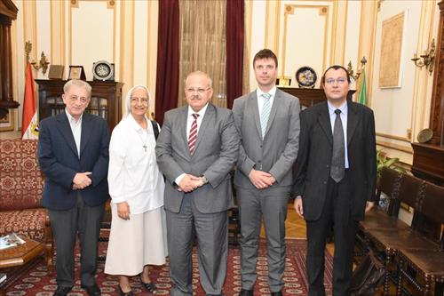 استقبل رئيس جامعة القاهرة الدكتور محمد عثمان الخشت، بمكتبه اليوم، وفدًا كاثوليكيًا ضم كلًا من المستشرق الإيطالي الأب جوزيف سكاتولين، أستاذ التصوف الإسلامي في المعهد البابوي للدراسات العربية والإسلامية في روما، والدكتور إيمون كرايل الأستاذ بمعهد الدراسات الأسيوية الشرقية بجامعة زيورخ، والراهبة سميحة راغب مديرة مدرسة القديس يوسف بالزمالك «راهبات كمبوني».