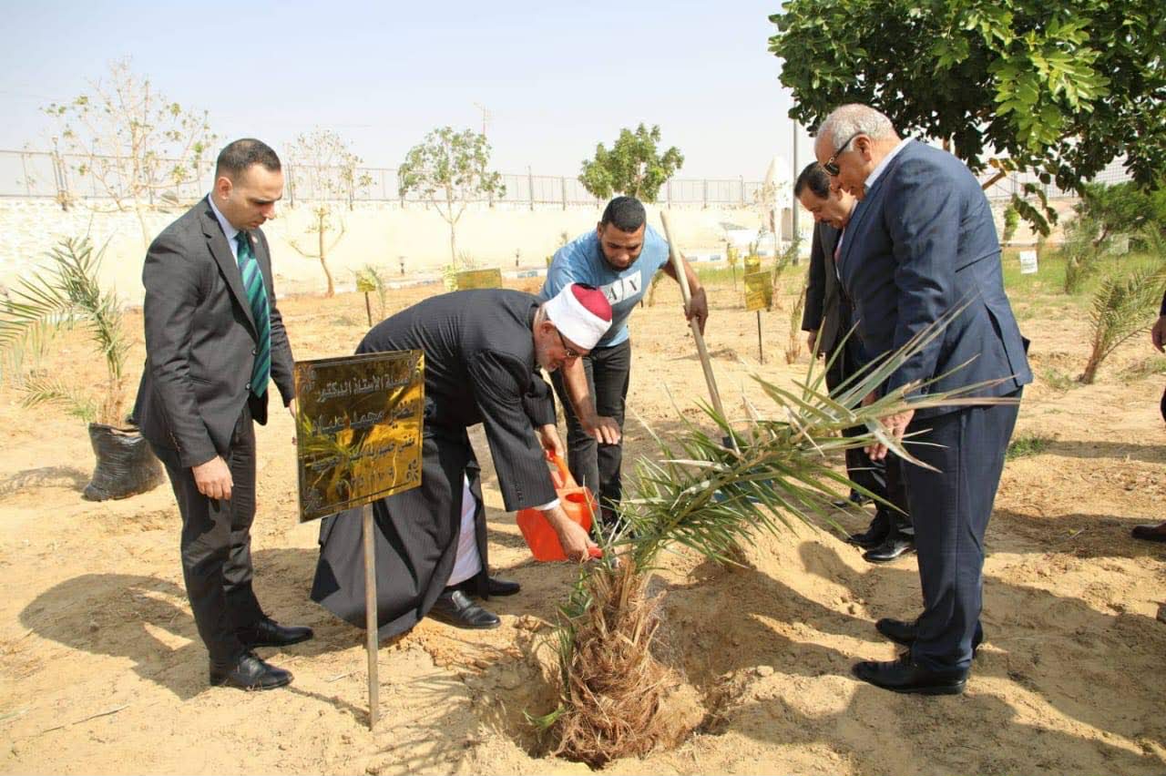 وتفقد المفتي، حديقة 30 يونيو بمدينة الخارجة، إذ غرس نخلة في إطار المبادرة الرئاسية للتوسع في زراعة النخيل وإنتاجية التمور.