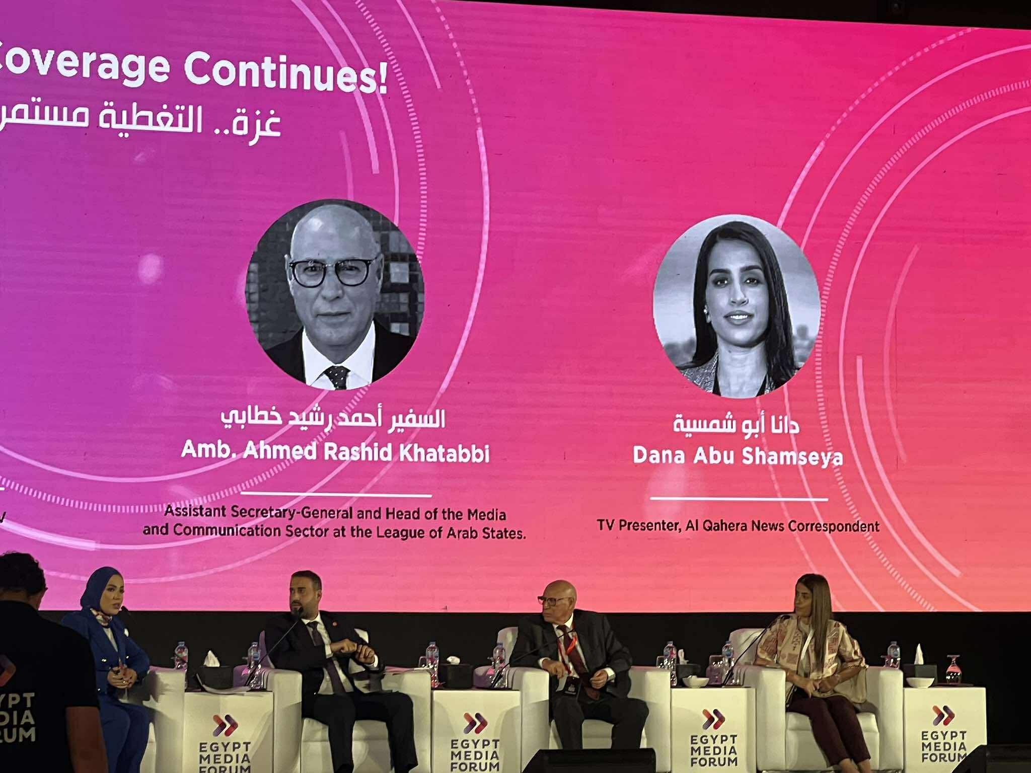 جاء ذلك خلال مشاركتهم في جلسة أدارتها الإعلامية آية عبدالرحمن المذيعة بقناة إكسترا نيوز، تحت عنوان: «غزة.. التغطية مستمرة» ضمن فعاليات اليوم الثاني من النسخة الثالثة من «منتدى مصر للإعلام».