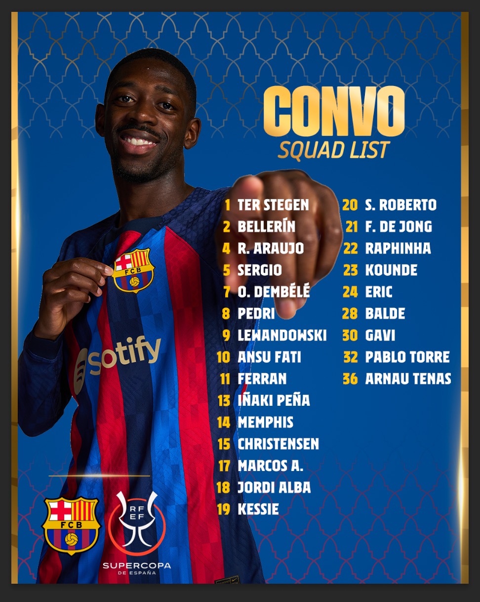 أعلن تشافي هيرنانديز، المدير الفني لبرشلونة، عن القائمة التي ستشارك في بطولة كأس السوبر الإسباني والتي ستُقام في السعودية خلال الفترة من 11 يناير حتى 15 من الشهر ذاته.