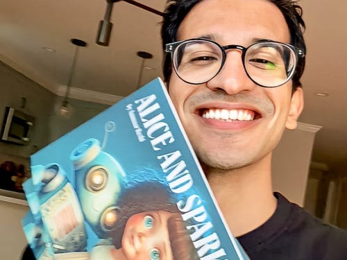 وفى ديسمبر الماضى، استعان «ريشى» بروبوت الدردشة الجديد الخاص بالمواقع التكنولوجية المتقدمة التى تتعامل مع أنظمة الذكاء الاصطناعى على غرار OpenAI وChatGPT لكتابة قصة للأطفال بعنوان «أليس وسباركل» وهى قصة عن فتاة صغيرة تُدعى «أليس» تسعى للتعرف على عالم التكنولوجيا بمعاونة صديقتها الآلية أو الروبوت «سباركل»، ومن أجل إنشاء الرسوم الإيضاحية لجأ «ريشى» لاستعمال منصة Midjourney التى تُمكن الفرد من إنشاء رسومات وأعمال فنية عبر استعمال تقنيات الذكاء الاصطناعى.