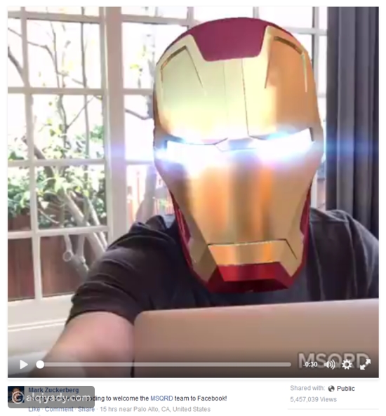 وقد أعلن مارك زوكربيرج عن عملية الاستحواذ عبر حسابه الخاص على موقع فيسبوك أمس، وذلك من خلال مقطع فيديو شخصي له يحتوي على قناع الرجل الحديدي (Iron Man)، وهو أحد الفلاتر المتاحة على التطبيق.