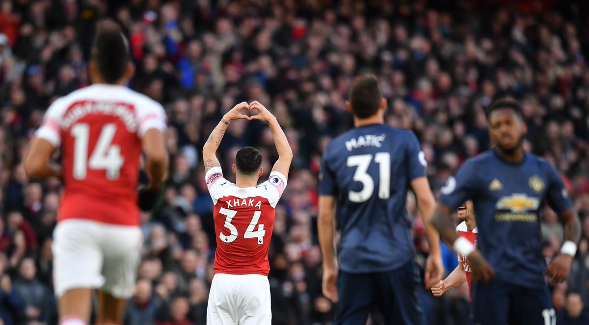 6- مانشستر يونايتد أصبح أول فريق في البريميرليج يستقبل هدفين من اللاعب السويسري جرانيت تشاكا.