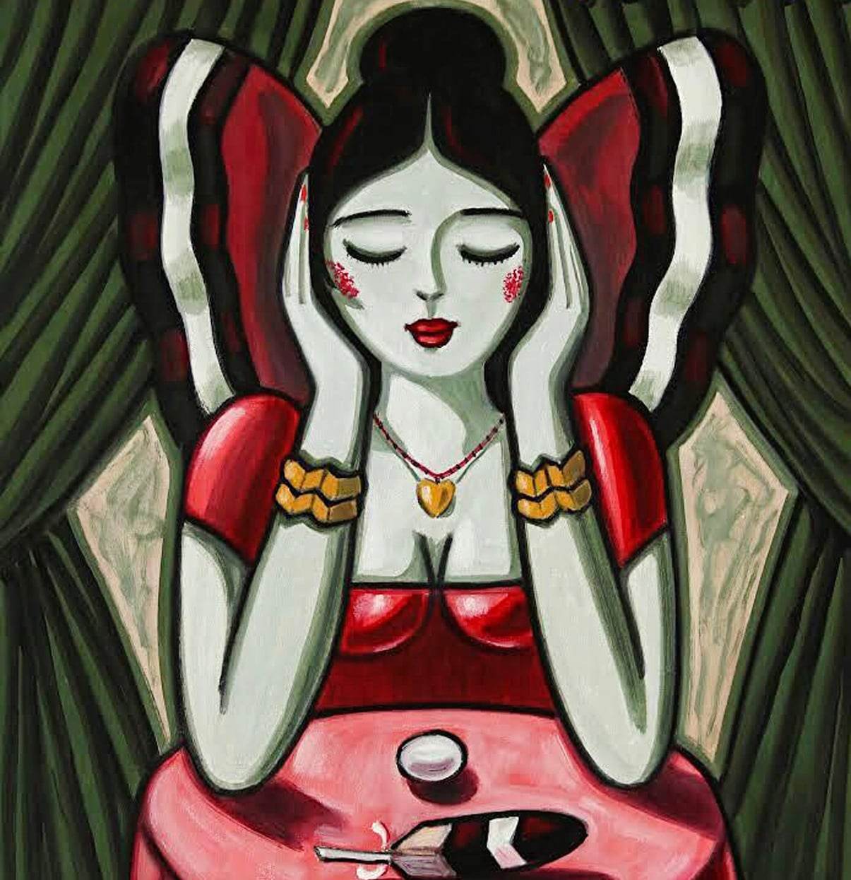 وأضاف الفنان حلمى التونى «قررت التعبير عن حرية المرأة فى لوحاتى هذه المرة بالأجنجة أو المرأة المجنحة خاصة أنه فى لوحاتى قديما كانت يطغى طائر الهدهد الذى يمتاز بأجنحته الجميلة، فالمرأة تشبه الهدهد أو المرأة المجنحة أو المرأة الحرة التى تصيح فى كل وقت لتقول «أنا حرة».