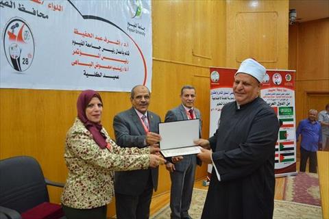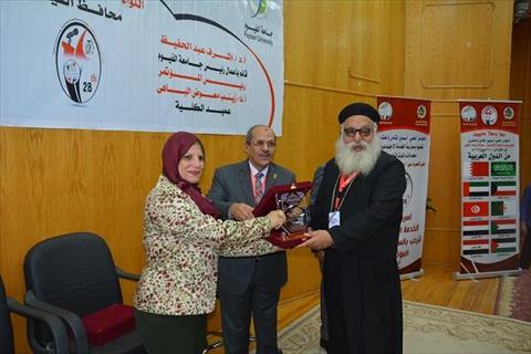 وفي ختام الجلسة الافتتاحية للمؤتمر، تم إهداء درع كلية الخدمة الاجتماعية للاستاذ الدكتور أشرف رحيل، والاستاذ الدكتور زينب الباهي، والدكتور مسعود إسماعيل المدير التنفيذي للمعلومات بالجامعة، ورؤساء جامعة الفيوم السابقين، وعدد من عمداء الكليات ومطران الفيوم والمجلس القومي للمرأة ورؤساء الهيئات الاجتماعية، كما تم افتتاح معرض للكتب والمشغولات اليدوية الخاصة بالطلاب.