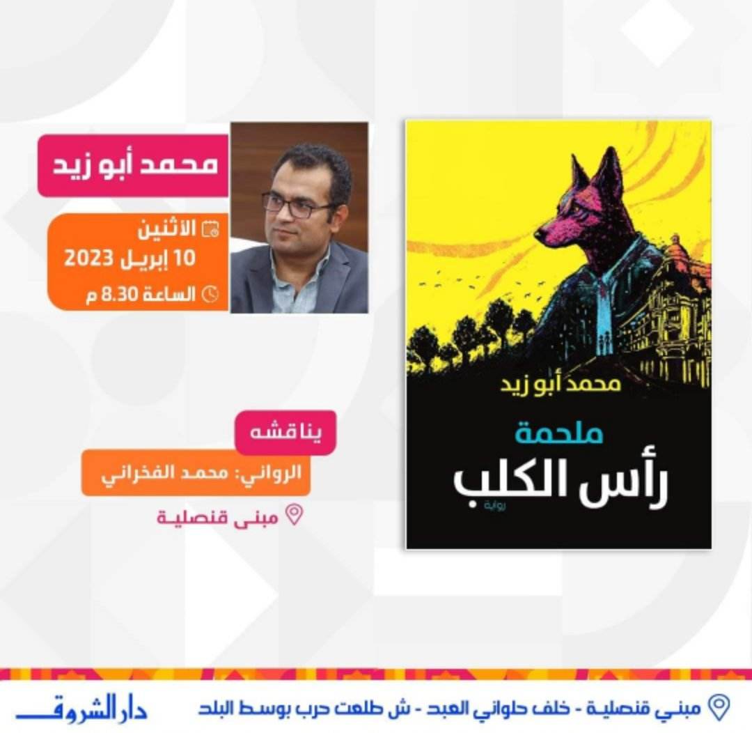 تنظم دار الشروق حفل إطلاق وتوقيع رواية "ملحمة رأس الكلب"، للشاعر والروائي محمد أبو زيد، اليوم الاثنين، وذلك في تمام الساعة الثامنة والنصف مساء، بمبنى قنصلية في وسط البلد، ومن المقرر أن يناقشه الروائي محمد الفخراني.