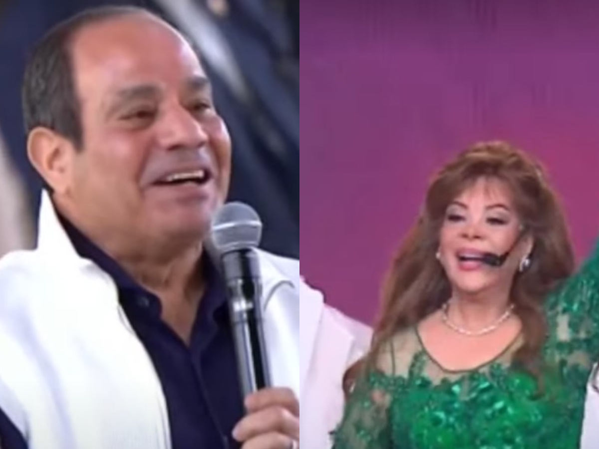 لترد الفنانة مبتهجة: "أنا اللي متشكرة.. وكل سنة وأنتم طيبين"، معربة عن سعادتها كونها أول مرة تقدم أغنية "أهلا بالعيد" على المسرح أمام الرئيس.