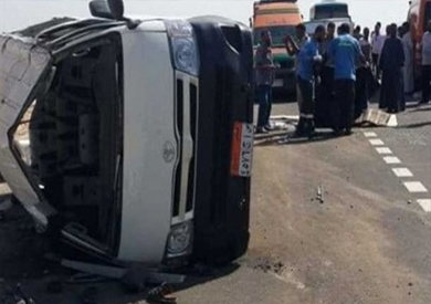 أصيب 5 من العمال الزراعيين، جراء انقلاب سيارة نصف نقل بالطريق الصحراوى السريع، فى نطاق مركز وادى النطرون بمحافظة البحيرة.