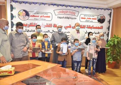 جاء ذلك بقاعة الاجتماعات بديوان عام المحافظة وبحضور فضيلة الشيخ عاصم القبيصي وكيل وزارة الأوقاف بأسيوط والشيخ محمد عبداللطيف مدير عام الدعوة بمديرية الأوقاف ، والشيخ ناصر محمد مدير المتابعة بأوقاف أسيوط، وعدد من رجال الدين وقيادات مديرية الأوقاف بالمحافظة والفائزين بالمسابقة وسط تطبيق كافة الإجراءات الاحترازية والوقائية من تعقيم للقاعة وقياس الحرارة لجميع الحاضرين.