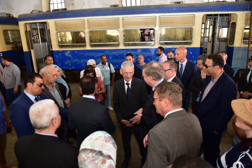تفقد سفراء الاتحاد الأوروبي كريستيان برجر وفرنسا مارك باريتي و أيرلندا شون أوريجان، مساء الثلاثاء، مشروع دعم وترميم ترام محطة الرمل في الأسكندرية.