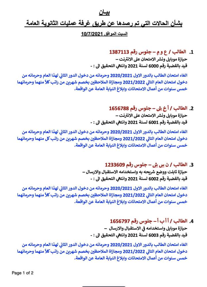 وأضاف الوزير أنه الوزارة حذرت كثيرا من الغش ولكن قام الطلاب المذكورون بمحاولات للغش وتم ضبطهم ومعاقبتهم.
