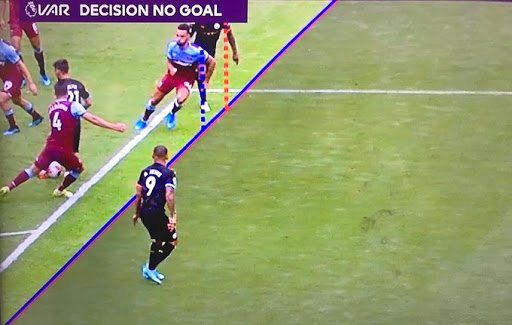 وسرعان ما تدخلت تقنية الفيديو للمرة الأولى في تاريخ الدوري الإنجليزي بعدما أثبتت وقوف رحيم ستيرلينج في موقف تسلل عند استلام الكرة، ليتم بعدها الغاء الهدف.