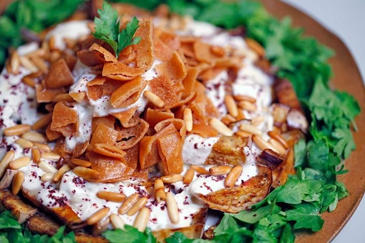 3- توضع القليل من صلصة الزبادي أو الصلصة الحارة فوق الفتة وتقدم ساخنة.