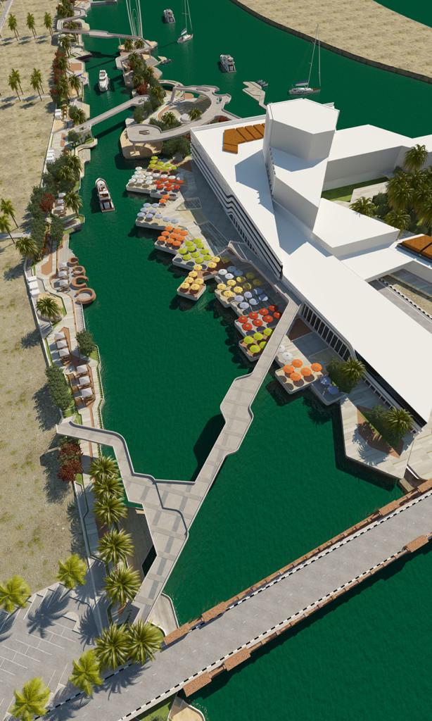 واعتمدت الفكرة التصميمية للتطوير على إضافة عناصر اقتصادية تنموية للجزء الشرقي لمحافظة بني سويف، بالإضافة إلى الممشى العام للكورنيش، وشملت هذه العناصر مبنى استقبال Terminal يخدم الفنادق والنزل والمطاعم والبازارات ويحتوي المبنى على مجمع للسينمات وفروع للبنوك، مرسى نهري للفنادق العائمة يستوعب من 10- 12 فندقا عائما، ومرسى للقوارب النهرية الأصغر سباحة ونقل، ومرسى للألعاب والرياضات المائية تشمل الموتسكلات المائية وقوارب التزلج، نادي لليخت والتجديف، منطقة صيد للهواة، ومنطقة سباحة وتعليم الغطس لليافعين بها مقومات الأمان.