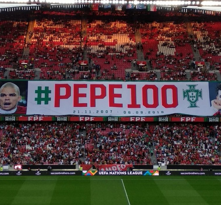 ورفعت الجماهير البرتغالية لافتة ضخمة تحتفل بتخطي بيبي حاجز الـ100 مباراة، والذي وصله له خلال مواجهة كرواتيا الودية مساء الخميس الماضي، والتي شهدت تسجيله هدف التعادل لفريقه.