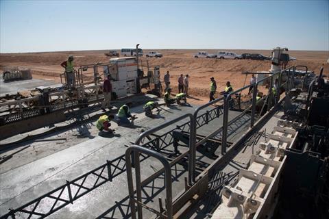 واضاف أن الطريق بعرض 3 حارات باجمالي 11.25م، وبسمك 56 سم مع استخدام الياف البوليمار لتزيد صلابة الخرسانة وتحمل الحملات الثقيلة ويعمل بكل قطاع ماكينتي خلاطة مع وجود استشاريين لمتابعة والاشراف الفنى على الأعمال وفق المواصفات الفنية.