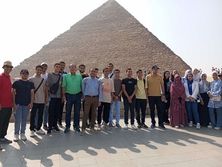 واستهل الطلاب البرنامج السياحي بالقيام بجولة بمنطقة أهرامات الجيزة، وزاروا الهرم الأكبر من الخارج والذي يعد العجيبة الوحيدة الباقية من عجائب الدنيا السبع للعالم القديم، ومنطقتي البانوراما وأبو الهول، كما استمعوا لشرح مفصل عن تاريخ هذه المنطقة الأثرية الفريدة وما تضمه من كنوز أثرية من مقابر للعمال بناة الأهرامات وطريقة بناء الأهرامات ونحت تمثال أبو الهول.
