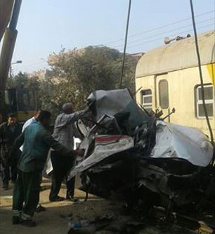 فيما دفعت هيئة السكة الحديد بعدد من الأوناش لرفع آثار تصادم القطار وتم الانتهاء من رفع القطار من على الأرض ووضعه على القضبان مرة أخرى، كما تم رفع حطام السيارة المتسببة فى الحادث.