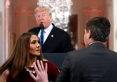 وخلال أول مؤتمر صحفي للرئيس المنتخب ترامب في 11 يناير عام 2017 حاول أكوستا توجيه سؤال للرئيس بخصوص روسيا لكن رد ترامب بغضب متهما أكوستا وباقي مراسلي وصحفيي سي إن إن بنشرِ وترويجِ الأخبار الكاذبة.