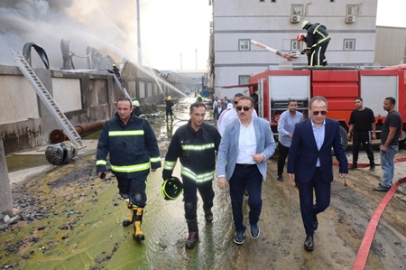 تفقد اللواء إبراهيم أبو ليمون، محافظ المنوفية، موقع حادث حريق مصنع "بيور كيم" للكيماويات بالمنطقة الصناعية السابعة بمدينة السادات، لمتابعة الموقف ميدانيًا والاطمئنان على جهود السيطرة على الحريق.