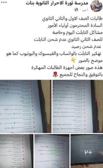 وقالت المدارس، إن السبب في مشاكل التابلت اليوم، هو تهكير التابلت بالواتساب والفيسبوك واليوتيوب، عدم شحن رصيد، وعدم شحن التابلت.